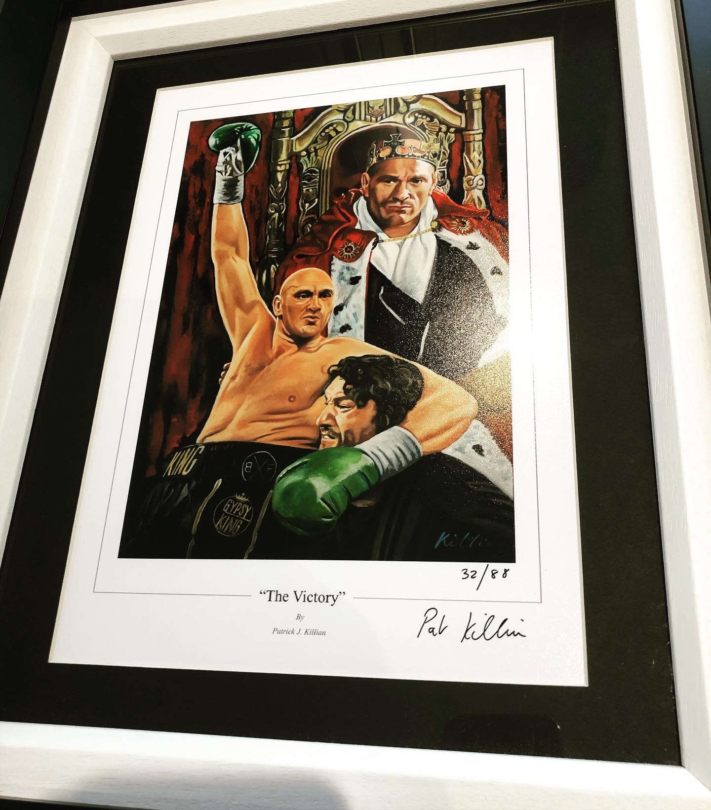 It’s been on and off the easel since coming back from Vegas in February. “The Victory” Painting was on my mind immediately after seeing fury’s entrance....and especially after the win and the way he did it against Wilder ~ Pat Killian/ Artist